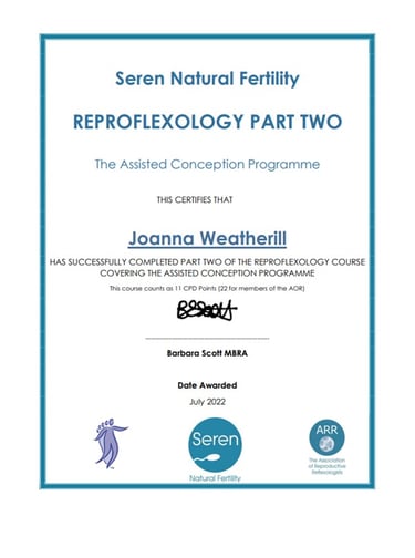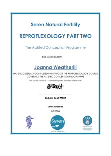Seren Natural Fertility, Reflexology Part 2 - The Assisted Conception Programme, July 2022.